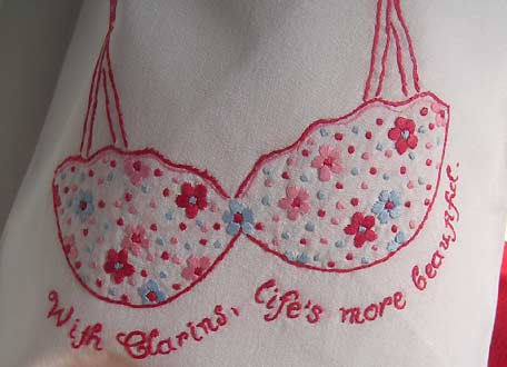 'With Clarins, life's more beautiful...'. Bespoke VIP packaging for a new product launch given to key journalist at a launch party in Paris. ~ VIP packaging, drawstring bag with silky lining.